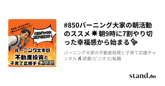 850バーニング大家の朝活動のススメ☀️朝9時に7割やり切った幸福感から始まる✨