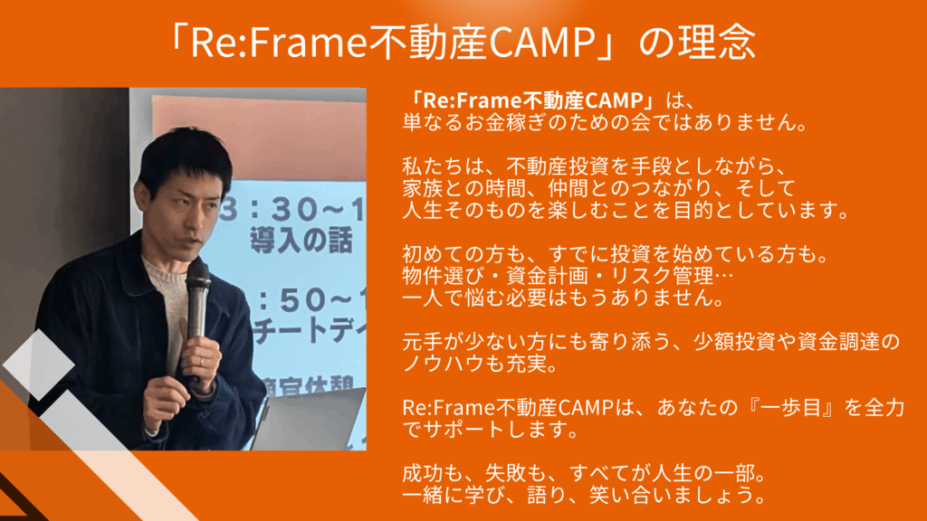 それが「Re:Frame不動産CAMP」の根っこにある想いです。