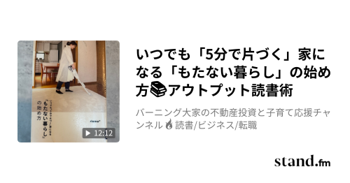 ↓スタエフ本編はこちら↓ いつでも「5分で片づく」家になる「もたない暮らし」の始め方📚アウトプット読書術 - バーニング大家の不動産投資と子育て応援チャンネル🔥読書/ビジネス/転職 | stand.fmriamo*「もた […]