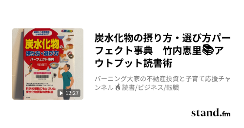 ↓スタエフ本編はこちら↓ 炭水化物の摂り方・選び方パーフェクト事典 竹内恵里📚アウトプット読書術 - バーニング大家の不動産投資と子育て応援チャンネル🔥読書/ビジネス/転職 | stand.fm竹並 恵里 糖質から食物繊 […]