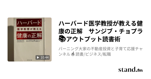↓スタエフ本編はこちら↓ ハーバード医学教授が教える健康の正解 サンジブ・チョプラ📚アウトプット読書術 - バーニング大家の不動産投資と子育て応援チャンネル🔥読書/ビジネス/転職 | stand.fmサンジブ・チョプラ […]