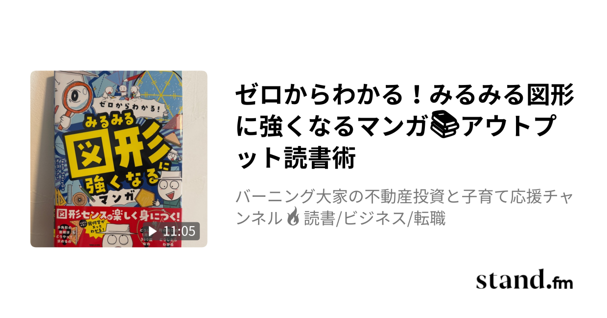 ↓スタエフ本編はこちら↓ ゼロからわかる!みるみる図形に強くなるマンガ📚アウトプット読書術 - バーニング大家の不動産投資と子育て応援チャンネル🔥読書/ビジネス/転職 | stand.fmTeam.StoryG ゼロから […]