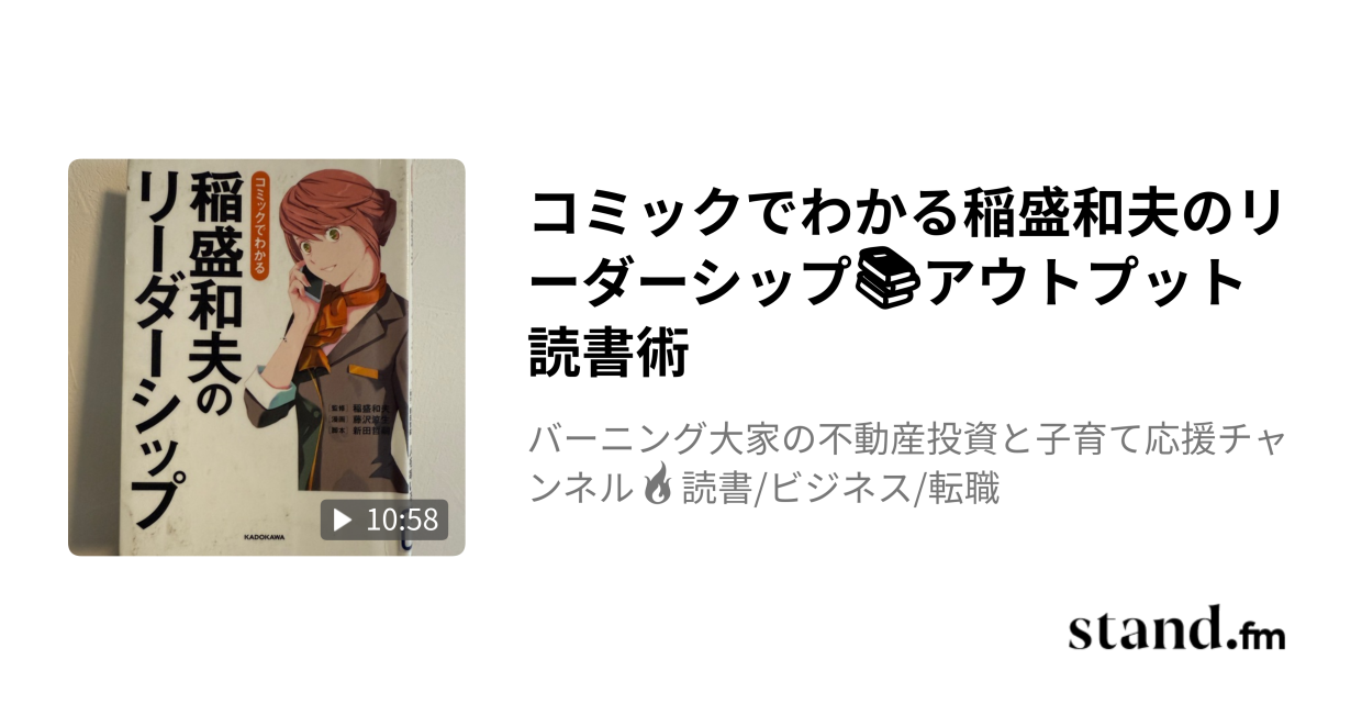 ↓スタエフ本編はこちら↓ コミックでわかる稲盛和夫のリーダーシップ📚アウトプット読書術 - バーニング大家の不動産投資と子育て応援チャンネル🔥読書/ビジネス/転職 | stand.fm# ハッシュタグで検索できます バー […]