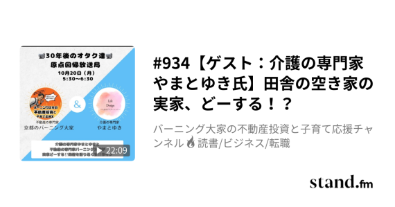 934【ゲスト:介護の専門家やまとゆき氏】田舎の空き家の実家、どーする!?