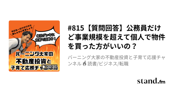 815【質問回答】公務員だけど事業規模を超えて個人で物件を買った方がいいの?